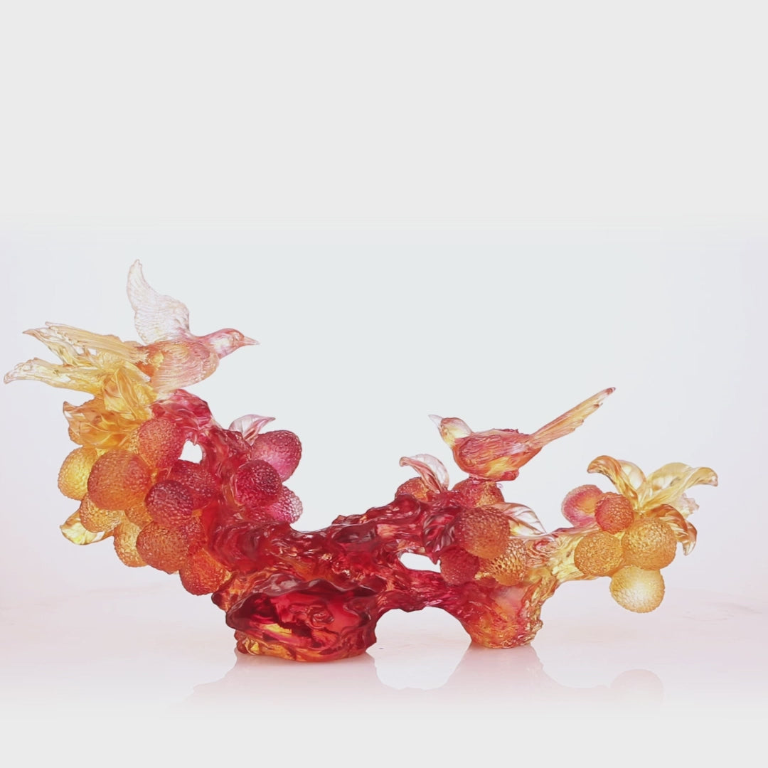 Design Concept: This exquisite design is adorned with delicate lychee branches, symbolic not only of the luscious fruit's endless sweetness but also of the profound concepts of abundant gains from modest investments and enduring longevity. The inclusion of two magpies serves as a representation of auspicious messengers, embodying the notions of prosperity and fulfillment. Titled "The Fullest Beauty," this artwork beautifully captures the essence of joy and beauty across all facets of life, conveying an everlasting sense of fulfillment. We posit that the zenith of beauty lies in achieving perfection in every aspect. Drawing from Eastern Culture, the significance of the number ten extends beyond mere numerical value, embodying notions of abundance and completeness. Hence, the artwork's Chinese name incorporates "shi (10)" to convey these rich meanings. 設計概念說明: 荔枝在傳統文化裡具有生生不息的寓意。這件作品掛滿荔枝,而荔枝及荔枝樹本身就寓意著:無盡的甜蜜、一本萬利、長壽綿延;兩隻喜鵲代表著喜事連報,都有「多」與「圓滿」的涵義。以《十全十美》命名,傳達著生活裡方方面面的美好,無盡的圓滿。這是一件自然形態的如意,將如意的造型與景物融合,取自然之趣;同時保持了傳統如意長柄的特點,立體圓雕,多角度雕刻,枝幹中部平拋光,透過琉璃澄澈一面欣賞雕刻肌理。在陳設觀賞上,擁有東方韻味與雅趣。 |