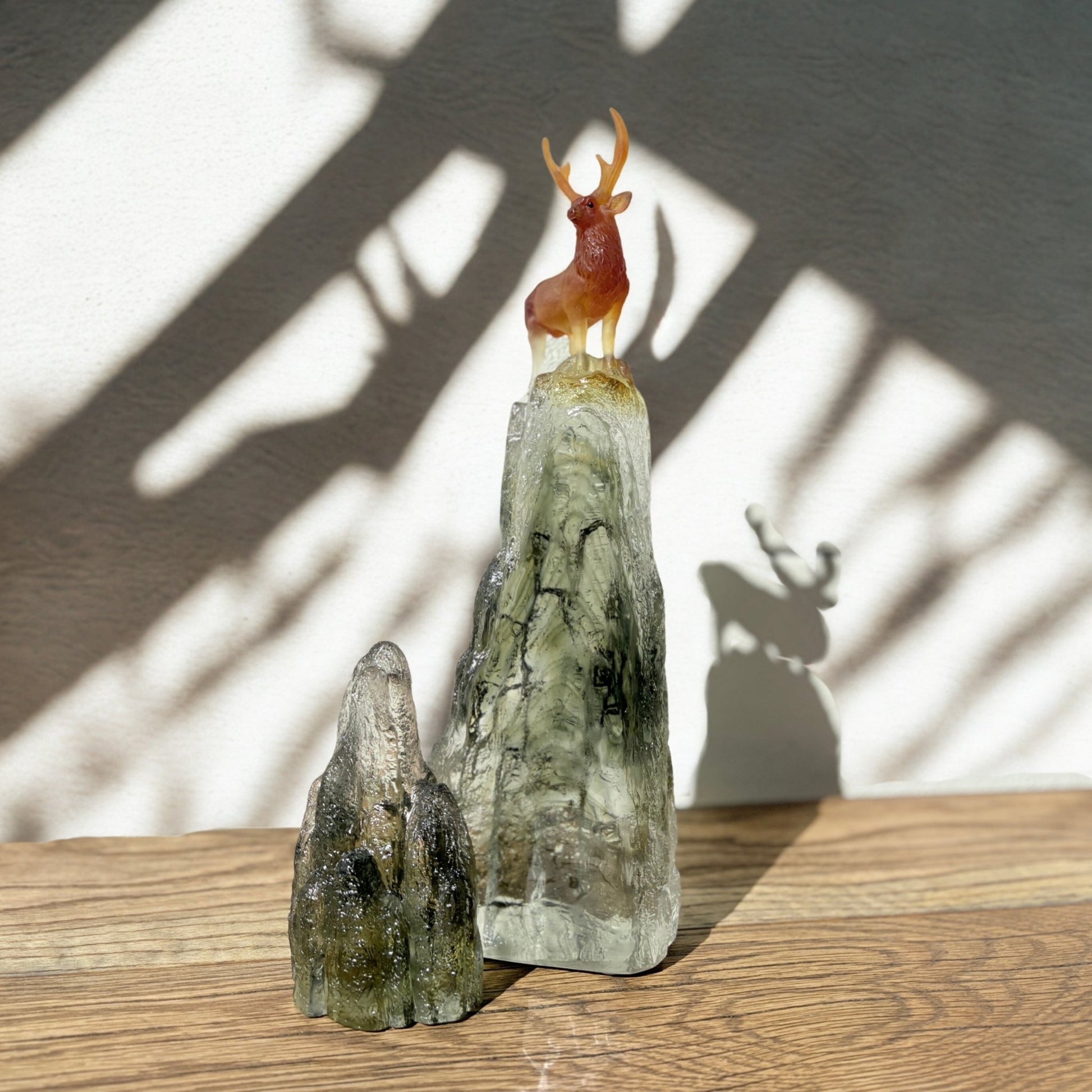 Auspicious Summit – Taiwan Sambar Deer A Symbol of Good Luck In Chinese, the word deer “Lu” is homonymous with the word “Lu” meaning the three words of good omen: “Fu, Lu, Shou”. A hundred deer gathered together is regarded as “abundant wealth”. “Auspicious Summit” comes from the highly limited collection “Believe and You shall See”—a series of four artworks that pay homage to LIULI art studio’s humble roots in the rich land of Taiwan. The elusive Sambar Deer depicted here is endemic only to the island, and its numbers are signs of thriving wildlife. The deer’s coat changes colors with the seasons; hence the interesting blend of crystal colors in the artwork. The technical mastery of this collection can be seen in the delicate sculpting of the deer’s antlers, achievable only with immense precision. Despite the challenges, a resounding statement on natural beauty and faith in the beauty of the world rings clear with this artwork—If you believe, then you will most certainly see. |