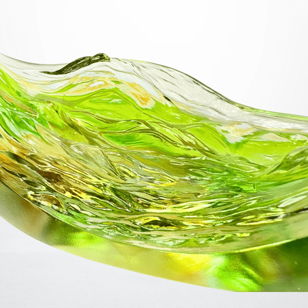 Technique: Pate de Verre Size: Ruyi: 13.39L x 3.35D x 2.56H inches,Round Base: 7.68L x 2.56D x 7.68H inches