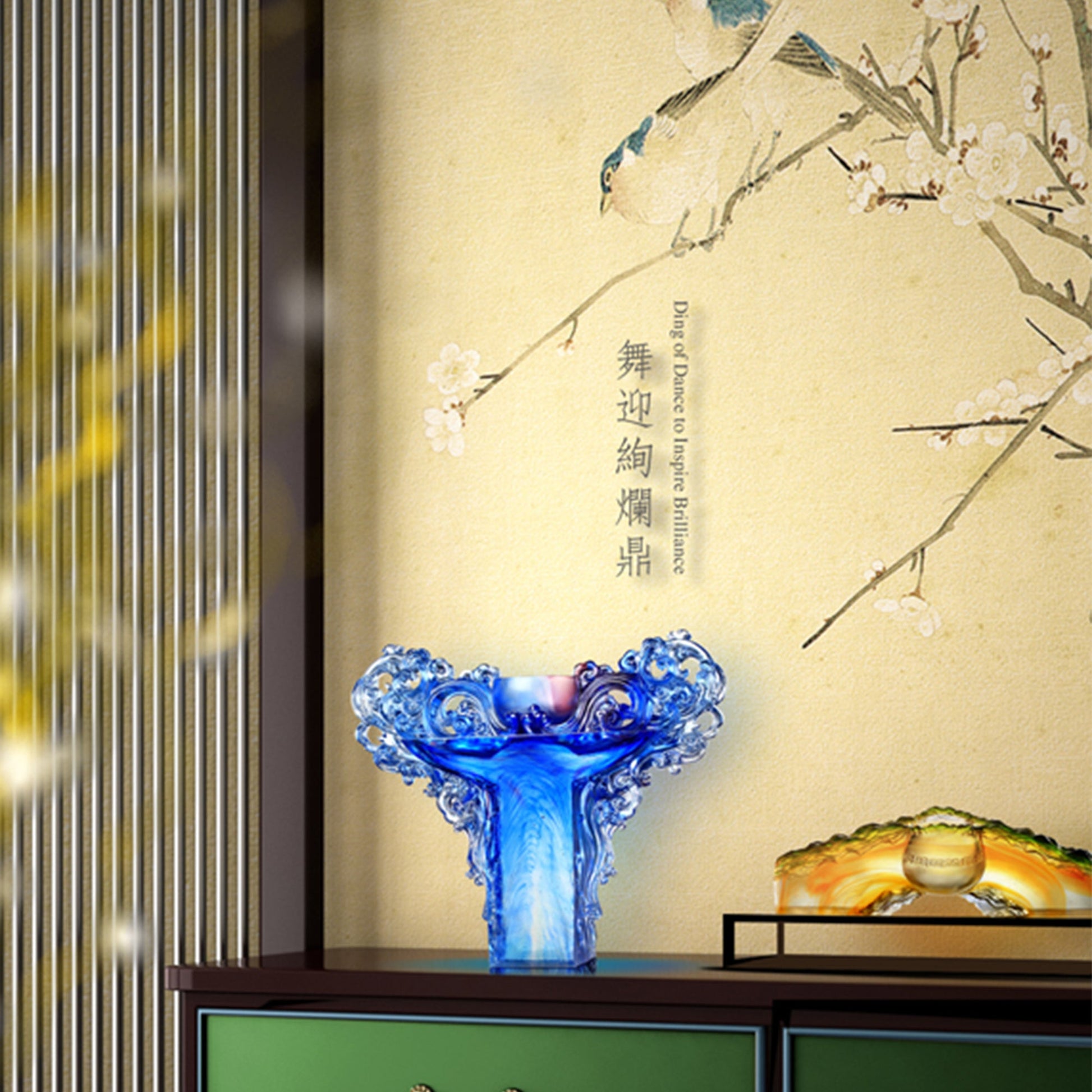 The Collection: The Nine Ding of Profound Virtue Design Concept: The highest virtue is to be gentle and strong, achieving the most celebrated actions through sturdiness and softness. This concept is elegantly expressed in the visually evocative piece "The Nine Ding of Profound Virtue," which depicts the many forms of the water element, from crashing waves to still waters. The artwork reflects the philosophy of balancing mildness and firmness, softness and hardness, to create harmony between contrasting dispositions. The Chinese glasswork serves as a reminder to find flexibility and rigidity in the balance of life, reflecting its passionate nature. 設計理念: 最高的美德是溫柔和堅強,通過堅固和柔軟實現最值得稱道的行動。這一概念在視覺上令人回味的作品《厚德九鼎》中得到了優雅的表達,它描繪了水元素的多種形式,從洶湧的波濤到靜止的水面。該作品反映了平衡溫和與堅定、柔軟與堅硬的哲學,在對比鮮明的處置之間創造和諧。中國的琉璃製品提醒人們在生活的平衡中找到靈活性和剛性,反映了它的熱情。 |
