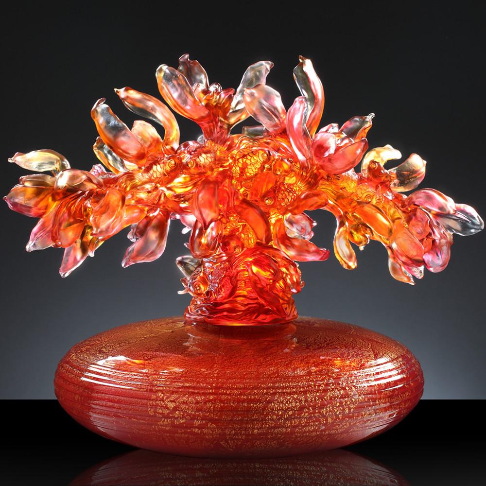 The Collection: Dancing Blooms, Flying Fish, Spring Lights Convergestrong> Design Concept: The spring orchid, also known as "fragrance by fragrance" and "swallow in pairs," is one of the most celebrated flowers in China. Its intoxicating fragrance has been honored by poets and scholars since the Sui Tang Dynasty. LIULI artists have captured the balance of its grandiose blossoms, reaching an apex of technical mastery never before seen in traditional or contemporary art. The body is mouth-blown with subtle, unique patterns of gold leaf, revealing the sumptuous beauty of Chinese flowers and goldfish in "Orchid Happiness." This piece symbolizes beauty, elegance, richness, and the joy of the spring season. 設計概念說明: 春蘭花,也被稱為 "逐香 "和 "成雙的燕子",是中國最著名的花卉之一。自隋唐以來,其醉人的香味一直受到詩人和學者的尊敬。劉力的藝術家們捕捉到了其宏偉的花朵的平衡,達到了傳統或當代藝術中從未見過的精湛技術的頂點。壺身採用口吹法,配以微妙、獨特的金箔圖案,展現了 "蘭花香 "中中國花朵和金魚的豐姿。這件作品象徵著美麗、優雅、豐富和春天的喜悅。 |
