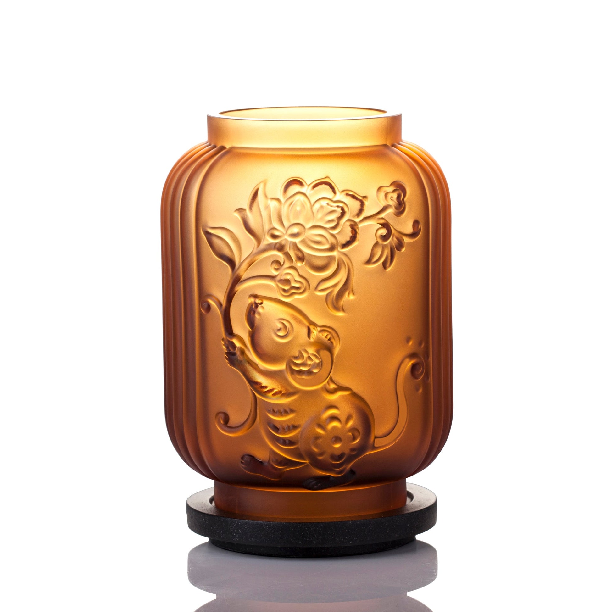 Design Concept: This is the exclusive design for South Coast Plaza in Year of the Rat. This alluring liuli lantern in a classic shape reminiscent of dynasties past creates space for reverie. The rat and flowers are inspired by traditional Chinese papercut. Elevating the handmade, this design finds the balance between opulence and simplicity through a distinctly Asian aesthetic. The vertical lines on either side add warmth and dimension to the quality of light when the lantern is lit. The design as a whole consists of a matte black base topped with a limpid liuli lantern with a clever rat on one side and a flower on the other. 鼠作為生肖神話的首位主角登場, 開啟新年新氣象. 鼠的印象, 靈敏機智, 行動力強且擅於積累, 普遍認為吉祥的生肖鼠, 不僅帶來財富, 並能廣納財富, 使得寶庫充滿, 衣食無憂。琉璃燈罩式燭臺源自東方古典雅緻造型,鼠與花朵造型來自剪紙.從手工藝發展出的視覺風格在華麗與簡練中取得平衡, 兩側自上而下的線條在燭光的映襯下, 營造出溫暖璀璨光影效果. 啞光質感的黑色底座搭配澄澈琉璃雙面分別是鼠與花的描述. |