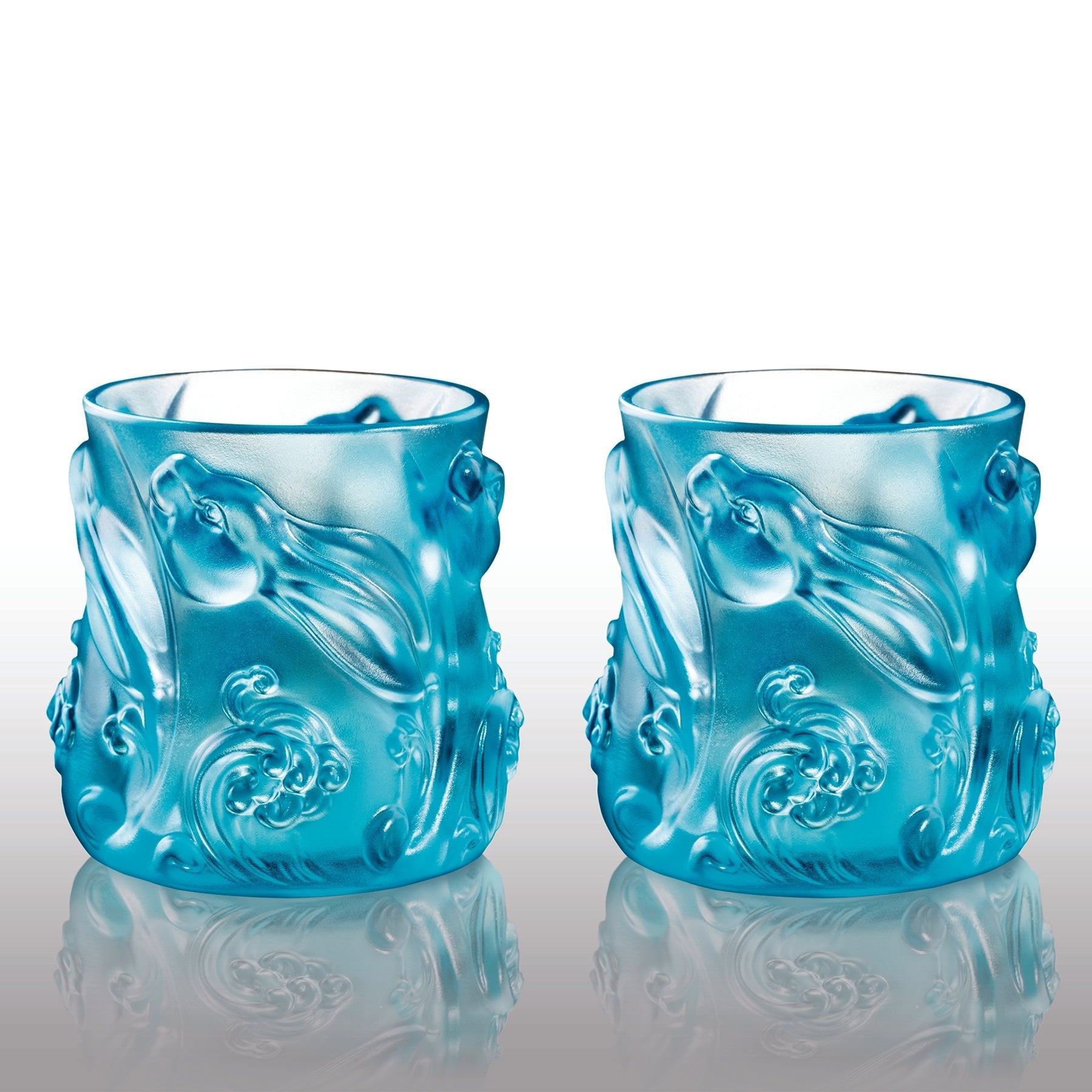 Design Concept: This is the exclusive design for South Coast Plaza in Year of the Rabbit. Two pairs of rabbits wrap around a glass, showcasing the exquisite handmade craftsmanship of LIULI artisans from 360°. 2023 marks the Year of the Water Rabbit. A year of incoming fortune, these rabbits boast a realistic face and artistic body. Waves curl up the rabbit’s lower half to symbolize vitality, strength and an unrelenting wave of fortune, wealth and energy. Featuring rabbits in high and low relief sculpture, each glass is hand molded and refined to eliminate all sharp edges and retain its handmade quality. This glass in relief is both functional and decorative. 兩兩成雙,四隻兔子彼此相連,環繞成平底杯周身的圖紋,360°展示琉璃鐫刻充滿手工美感的圖騰演繹。 2023年為水兔年,水帶來財富。兔的造型既有寫實的五官與長耳,也有藝術化處理的軀幹與腿部。下肢與水浪的大膽結合,令兔子仿佛伴隨水浪而生,尊貴且神秘。翻湧向上的水浪,精力旺盛的兔子,代表著生生不息的財富運勢,通達四方。杯身採用高低立體浮雕,每一隻平底杯的雕飾表面均由手工打磨處理,保持手持時的握感舒適無棱角。全方位的華美浮雕,令作品兼具實用及觀賞性。 |