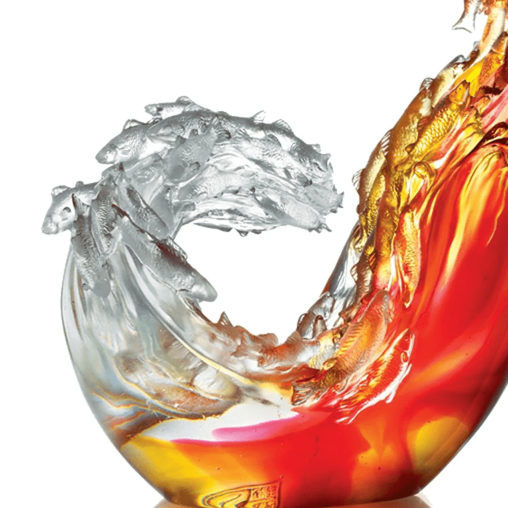Design Concept: This artwork is grand and powerful, vividly portraying the dramatic scene of fishes swimming upstream, plunging through rushing currents, and battling against the flow of water. In its sculptural form, it captures the precise moment a fish leaps from the water, with splashes and fishes merging into one—a striking representation of vibrant life force. The piece evokes a dynamic sense of beauty through movement and energy.